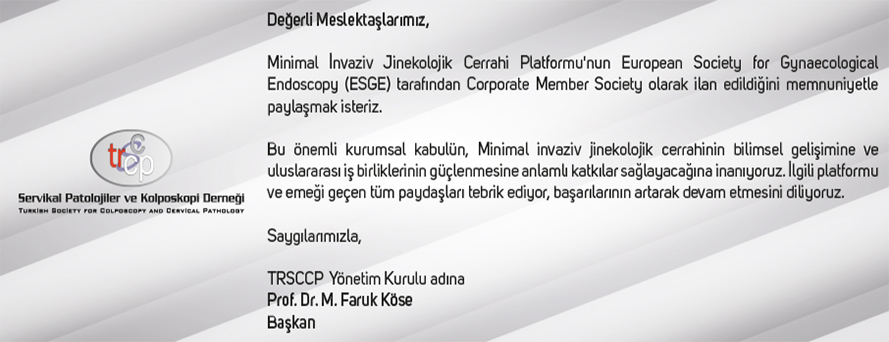 10 Kasım 2004’te kurulan Servikal Patolojiler ve Kolposkopi Derneği (TRSCCP), serviks kanserinin önlenmesi ile ilgili tüm konuların tartışıldığı bir kuruluştur. Derneğimiz 20 Ekim 2008 tarihi itibariyle IFCPC www.ifcpc.org üyeliğine kabul edilmiştir.